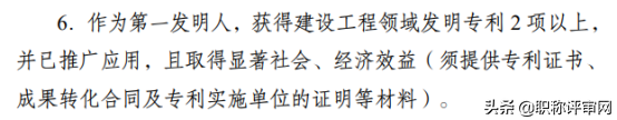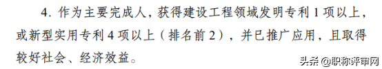 3. 上圖也能夠看出來,評中級(jí)只要你是專利的主要完成人即可;評高級(jí)需要你是發(fā)明專利的主要完成人或者新型實(shí)用專利排名前2的完成人;評正高需要你是發(fā)明專利的第一發(fā)明人。